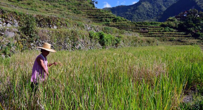 A woman farmer tends to her paddy field in the Batad region of the Philippines. ESCAP/Jophel Botero Ybiosa
