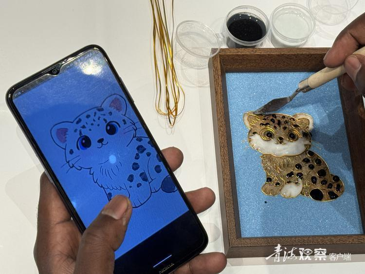 图为非洲青年体验掐丝唐卡技艺。青海日报融媒体记者 王煜鹏 张慧慧 摄