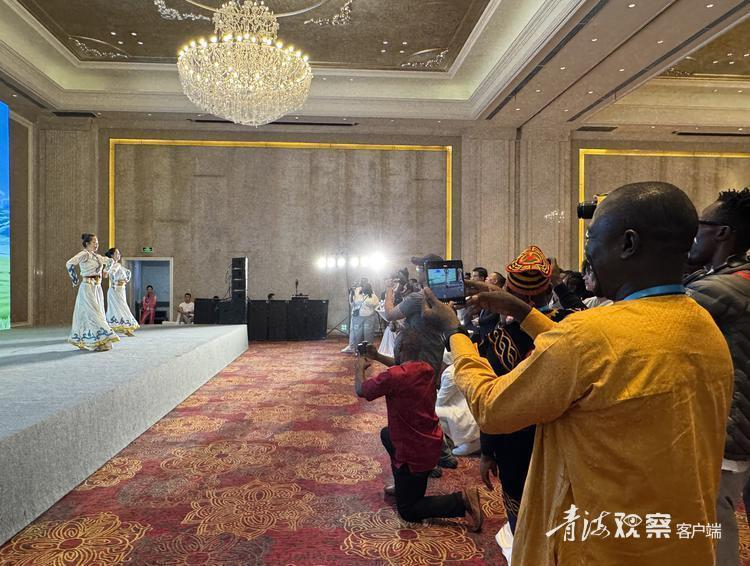图为非洲青年记录精彩的文艺演出。青海日报融媒体记者 王煜鹏 张慧慧 摄