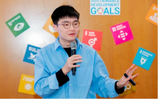 联合国可持续发展目标青年领袖(联合国SDG Young Leader)王翰元作为往届青年创客挑战赛代表,分享了AI如何助力可持续未来的创变故事,“用技术,让可持续变得简单、可追溯、可信任。”
