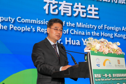12月15日,外交部驻港特派员公署、香港“一带一路”总商会及香港中国企业协会在香港成功举办第四届“一带一路”青年发展高峰论坛,主题为“青创数字‘一带一路’ 智联绿色发展未来”。花有副特派员、香港“一带一路”总商会会长郑翔玲、特区政府民政及青年事务局局长麦美娟、国际调解院秘书长郑若骅在开幕式上致辞,香港“一带一路”总商会主席林建岳、香港中国企业协会总裁于晓、特区政府财经事务及库务局副局长陈浩濂、“一带一路”专员何力治、“一带一路”共建国家驻港总领馆、商会负责人及香港青年团体、各界青年代表等数百人出席。
