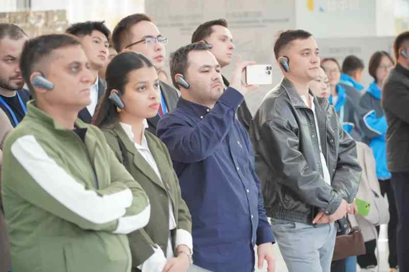 11月10日,上合组织国家青年代表在新疆软件园体验科大讯飞新疆公司智能产品。