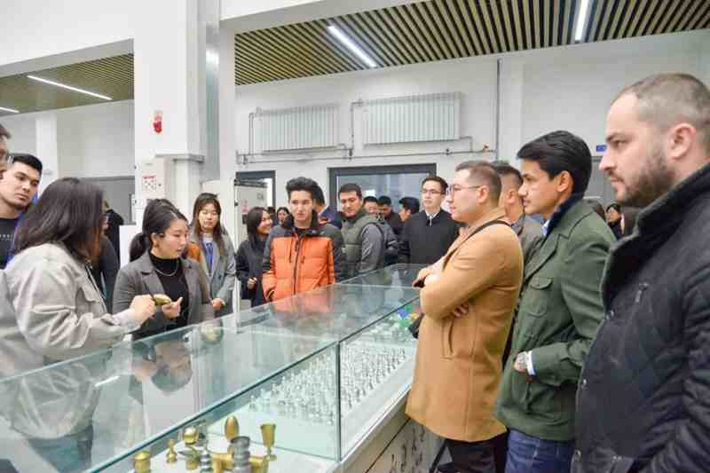 11月11日,上合组织国家青年代表参观新疆大学数字技能实训基地。